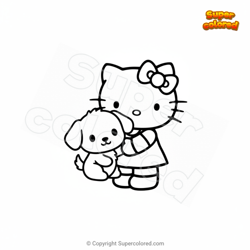 Disegno da colorare Hello Kitty con cane